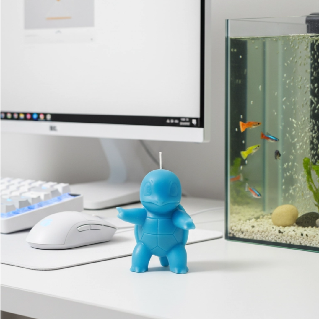 Así como Squirtle es el compañero ideal para empezar cualquier aventura, esta vela es el complemento perfecto para darle vida a tu setup, escritorio o rincón favorito.